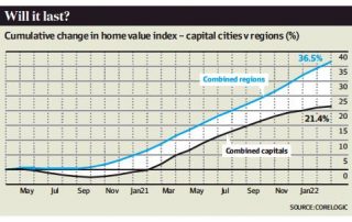 When combined with a shortage of stock, this caused regional housing prices to grow at almost twice the speed of city properties – 36.5 per cent compared with 21.4 per cent.