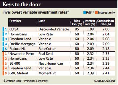 The accompanying tables from Canstar, which monitors rates, shows the cheapest deals for investors seeking principal-and-interest or interest-only loans.